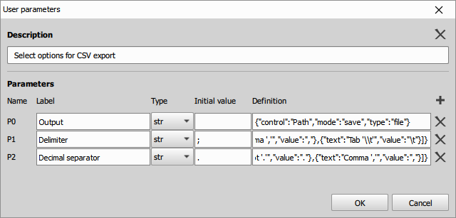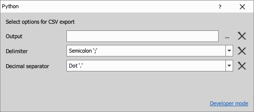 lines 36-38] - Exports the input table to CSV with selected separator and decimal format [
